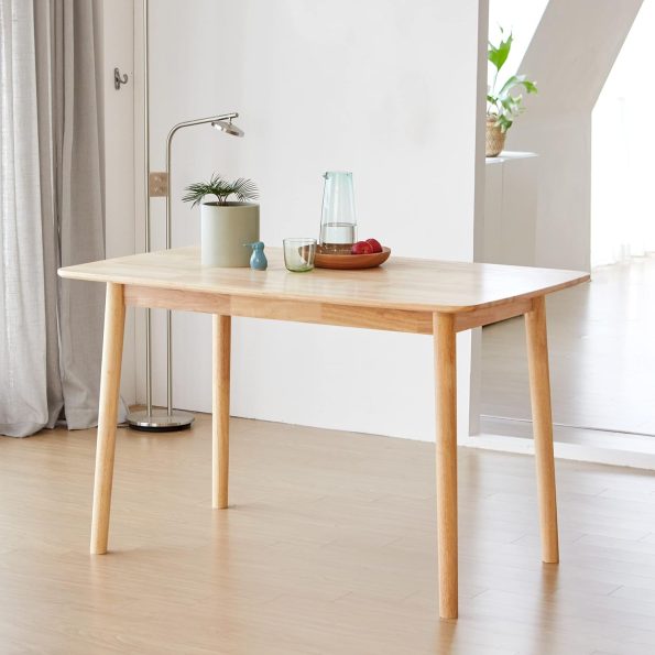 - 47″ Dining Table is a timeless mid-century modern style rectangular wooden kitchen table. Constructed entirely of natural solid Malaysian Oak, this dining table features smooth and curved table top with visible natural wood grain for natural and walnut finish.