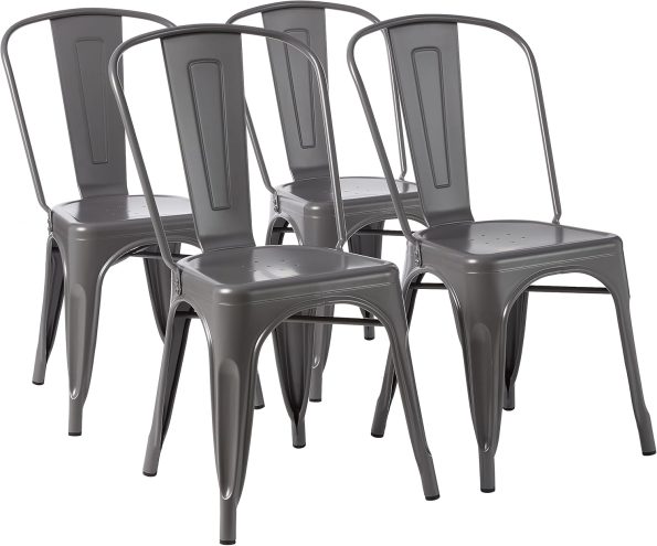 Metal Dining Chairs, Dark Grey, 1 Count (Pack of 4)