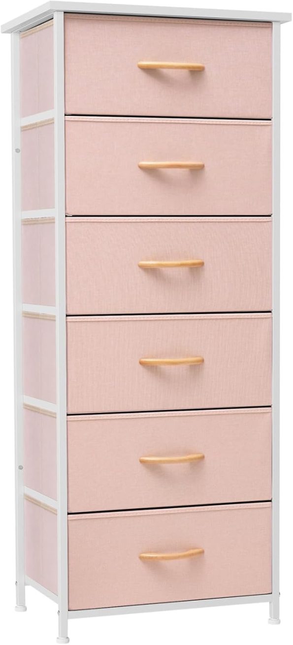 Pink Dresser for Bedroom Storage Tower – Sturdy Steel Frame, Wood Top, Easy Pull Fabric Bins, Wood Handles – Organizer Unit for Hallway, Entryway, Closets – 6 Drawers