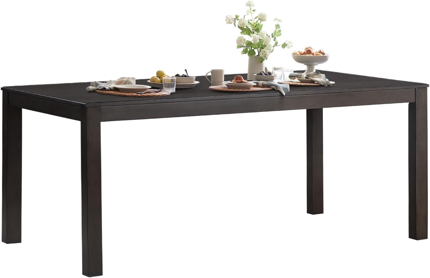 Rectangular Dining Table for 6, Wooden Kitchen Dining Room Table Dinner Table for 4 with Square Legs, Brown