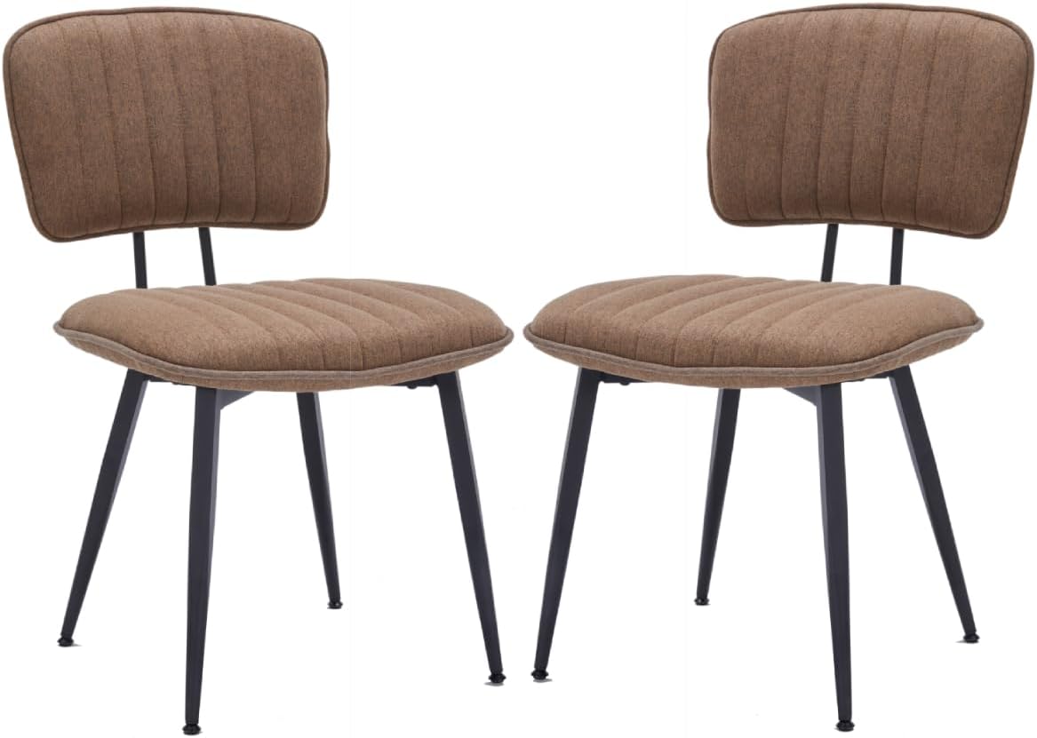 Upholstered Dining Chairs Set of 2, Fabric Kitchen Dining Room Chairs with Metal Legs, Modern Dining Chairs for Living Room & Dining Room (Brown)